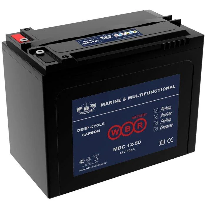 Назначение изделия Свинцово-кислотные карбоновые (Carbon) высокоцикличные выполненные по технологии AGM лодочные аккумуляторные батареи WBR Marine серии MBС обладают высоким качеством и надежностью, в еще→ысокой цикличностью использования, устойчивы к глубоким разрядам и применяются для питания на яхтах, катерах и моторных лодках. Возможны к применению как источники питания для электронасосов, эхолотов, осветительных приборов и другого вспомогательного оборудования. Двойные полюсы позволяют подключать двигатель и другое оборудование к аккумулятору одновременно.