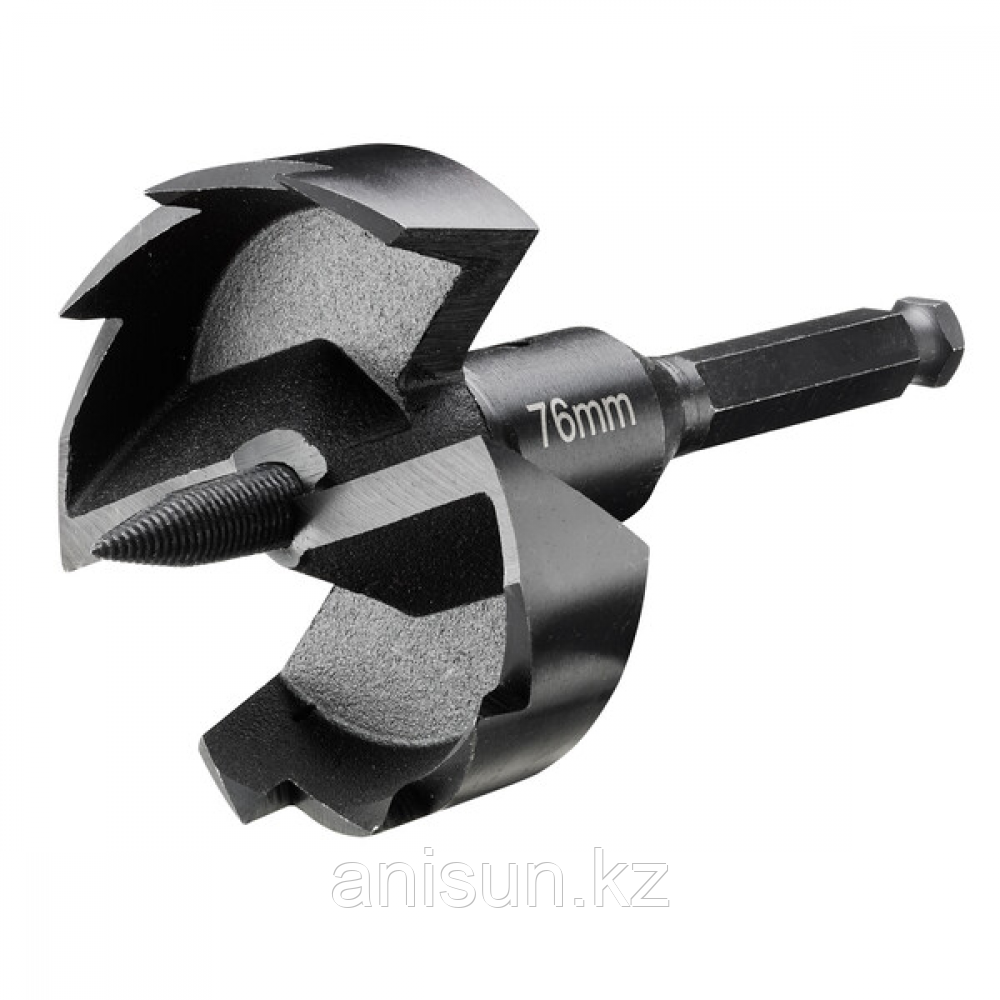 Сверло перовое изготовлено из углеродистой стали. Твердость режущих кромок 45–54 HRС. Может использоваться с ручной механической и электрической дрелями, а также сверлильными станками. Имеет плечевое еще→заострение. Хвостовик шестигранной формы предотвращает проворот сверла в патроне. Сверла от 16 до 40 мм могут использоваться с удлинителем 70495. Сверло перовое предназначено для получения отверстий в мягкой и твердой древесине с любым расположением волокон, клееной фанере, ДСП.