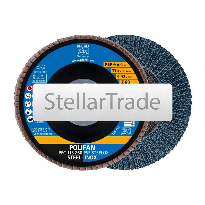 Веерный шлифовальный круг PSF-Z - универсальный инструмент с повышенными требованиями к производительности. Предназначен для обработки металлов, включая сталь и нержавеющую сталь, с эффективным снят еще→ием материала на сварных швах и кромках. Преимущества модели Высокая производительность съема - оптимизирован для использования с мощными углошлифовальными