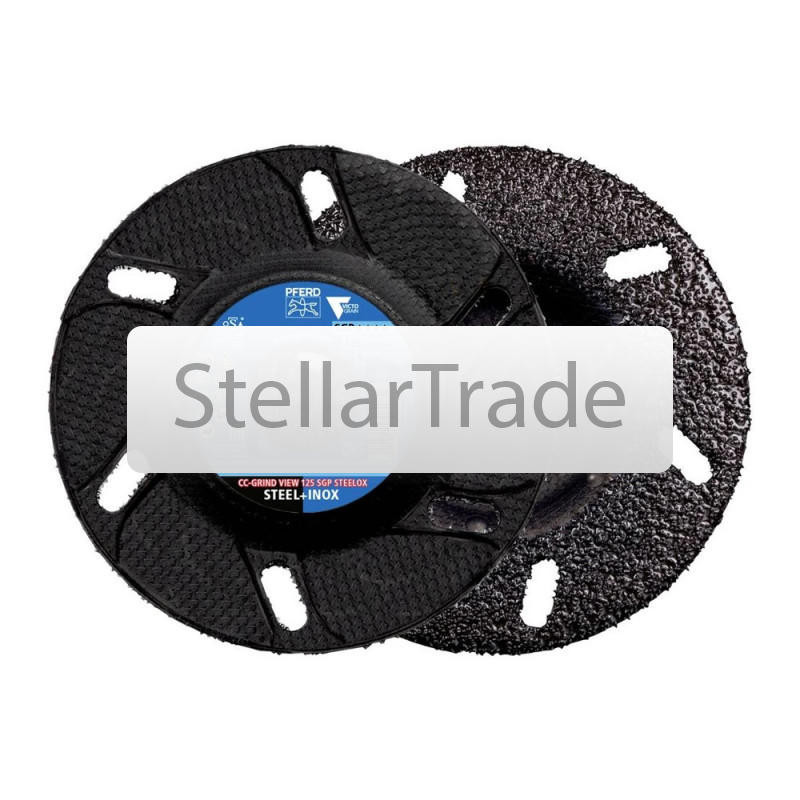 Pferd CC-GRIND VIEW 125 SGP STEELOX (64196126) - шлифовальный диск для стали и нержавеющей стали, отличающийся высокой производительностью и эргономичностью при обработке поверхностей. еще→Преимущества модели Максимальная агрессивность обеспечивает быстрейший прогресс в работе и высокую эффективность съёма материала. Опорная пластина из армированного стекловолокном пластика