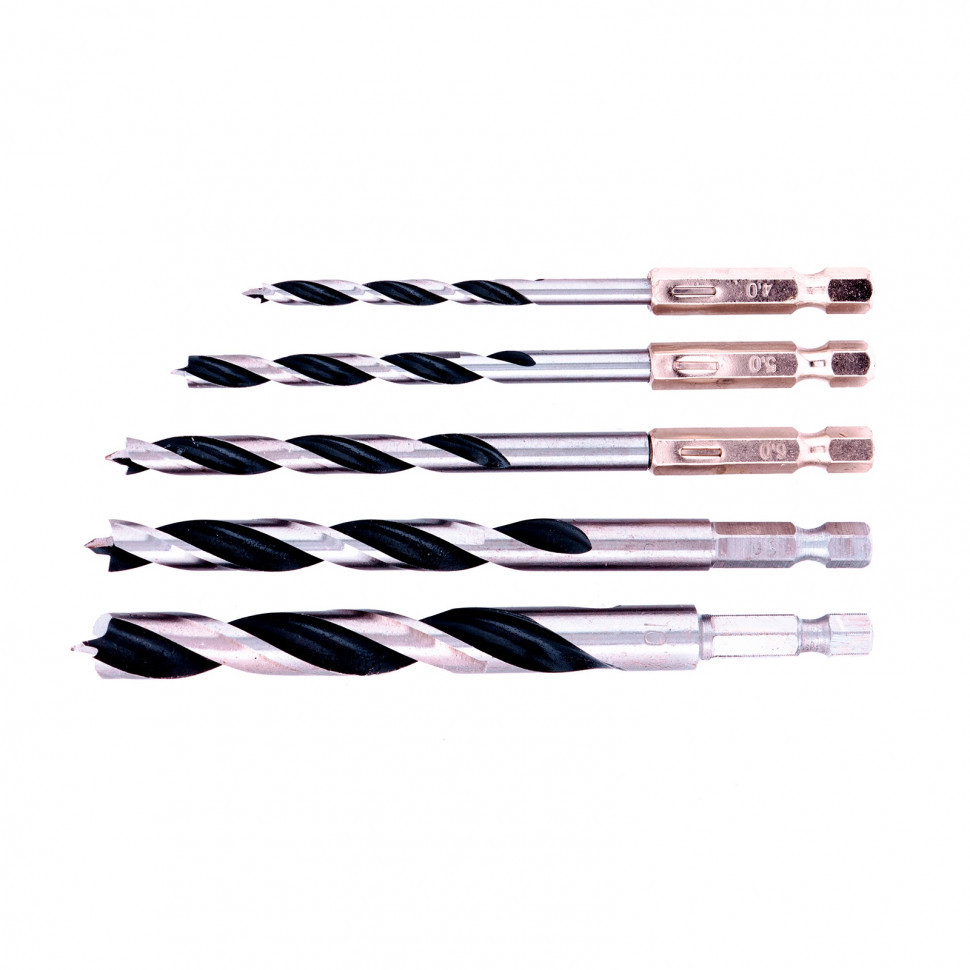 Набор сверл по дереву, 4-5-6-8-10 мм, 5 шт, шестигранный хвостовик, пластиковый кейс, Matrix 70283mi