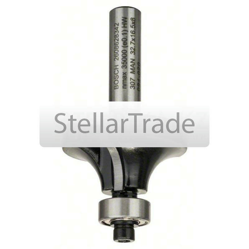 Карнизная фреза Bosch 8 mm, R1 10 mm, L 16,5 mm, G 57 mm Для скругления кромок оконных рам, шкафов, столешниц, полок и каминных обрамлений Шарикоподшипник для простого ведени еще→я прямо на заготовке без шаблона Карнизная фреза Bosch Bosch для чистых закруглённых кромок Для массивных пород древесины, таких как ель, бук, дуб, ольха и абразивных материалов Карнизная фреза