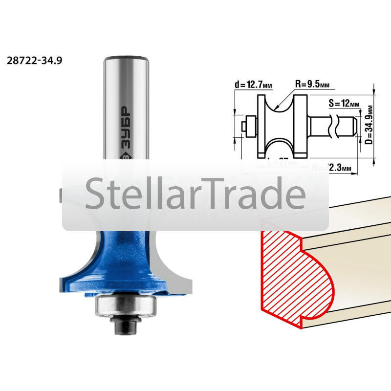 Фреза отлично подходит для обработки кромок, торцев, получения декоративного профиля при работе с различными видами древесины. Преимущества ЗУБР 28722-34.9: Заточка производи еще→тся только на самых современных станках с ЧПУ. Упорный подшипник позволяет обрабатывать криволинейные кромки без дополнительных приспособлений. Использование ЗУБР 28722-34.9: