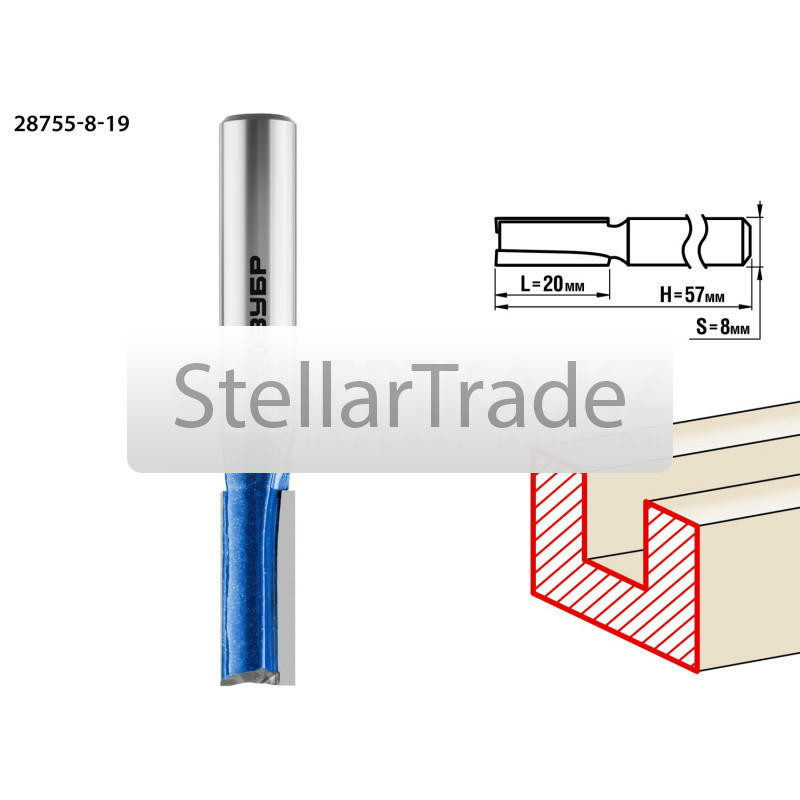Фреза отлично подходит для изготовления пазов и канавок требуемой конфигурации при работе с различными видами древесины. Преимущества ЗУБР 28755-8-19: Высококачественный твер еще→дый сплав для повышенного ресурса и чистоты обработки. Заточка производится только на самых современных станках с ЧПУ. Использование ЗУБР 28755-8-19: Используется на фрезерных