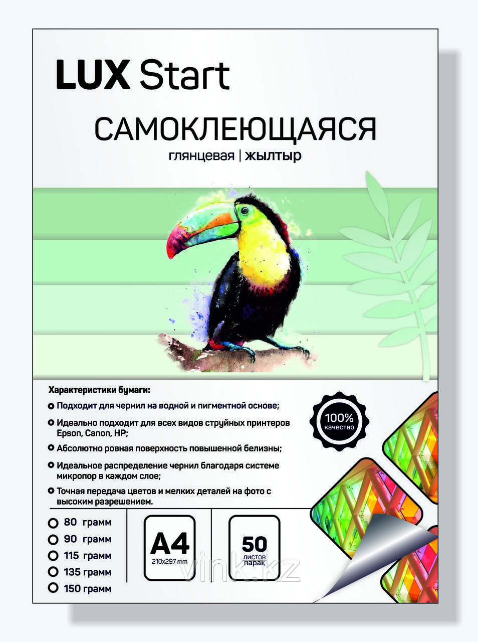 Самоклеющаяся фотобумага, глянцевая. Предназначена для изготовления различных этикеток. Подходит для всех струйных принтеров. В упаковке 50 листов. Плотность 80 грамм.