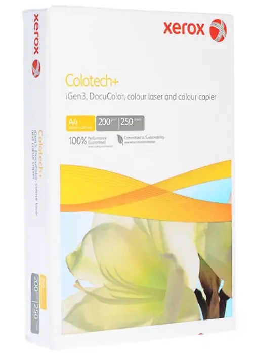 Сверхплотная бумага Xerox Colotech Plus предназначена для печати на лазерных принтерах. Плотность каждого листа приравнивается к 200 г/м², благодаря чему листы являются надежными, износостойкими, до еще→лговечными и прочными.