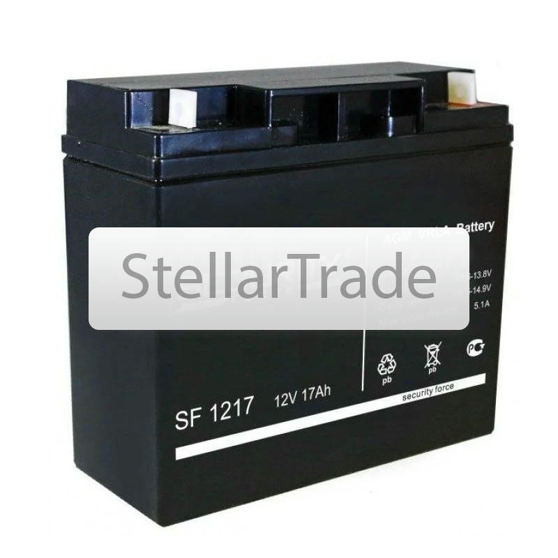 Характеристики SF 1217: Напряжение 12 В Емкость 17 Ач Технология AGM Срок службы АКБ 3-5 лет еще→Тип клеммы Ушко под болт+гайка M5 Тип аккумулятора Стационарный Габариты 182х76х167 мм Вес 5.7 Комплект поставки SF 1217: Аккумуляторная батарея SF 1217