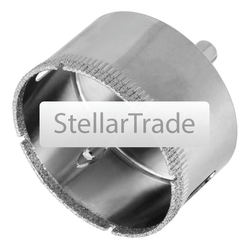 Сверло Сибртех 72723 размером 55 х 55 м, с шестигранным хвостовиком и центрирующим сверлом, позволяет получать отверстия в керамической плитке и стекле. Его устанавливают на дрель или шуруповерт, реко еще→мендуемый диапазон рабочих оборотов 350-700 об/мин. Оснастка используется при выполнении бытовых ремонтных и отделочных работ. После заглубления алмазной коронки на 1-2 мм