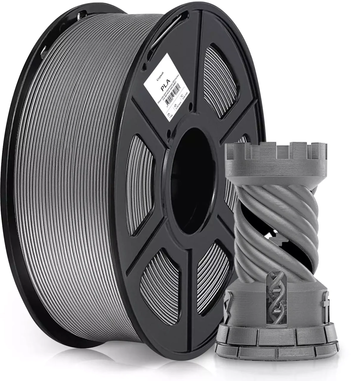 Серебристый пластик Bambu Lab PLA Silk Пластик для 3D принтера является расходным материалом. Он имеет вид полимерной термопластичной нити, которая нагревается экструдером принтера до определенной тем еще→пературы и становится достаточно пластичной для послойного создания прототипов и других изделий. В процессе остывания она приобретает достаточную для эксплуатации прочность. Чтобы