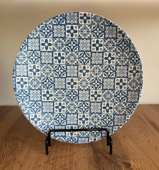 Тарелка синяя Керамическая тарелка диаметром 22 см украшена ярким синим принтом коллекции «Мозайка». Матовая поверхность делает ее особенно стильной и современной. Тарелка идеально подходит для закусо еще→к, салатов и десертов. Благодаря прочной керамике изделие сохраняет красоту и долговечность даже при регулярном использовании. Отлично сочетается с другими предметами серии «Мозайка».