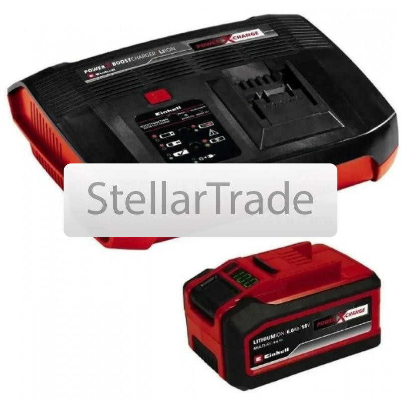 Аккумулятор Einhell PXC "Starter Kit" 18V 4-6Ah + зарядное устройство 6A Boostcharger 4512143 - состоит из ускоренного зарядного устройства для аккумуляторов Einhell 18V Power-X-Boostcharger 6A и акку еще→муляторной батареи Power X-Change Li-ion 18V 6 Ah Multi-Ah. Вы можете использовать Power X-Change аккумулятор для питания более 200 различных инструментов линейки Power X-Change system. Это означает, что вам нужна только одна батарея для всего семейства
