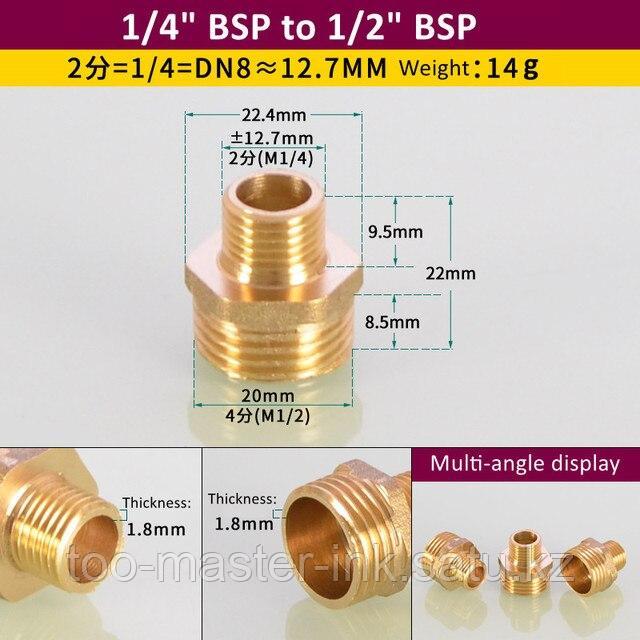 резьбовый переходн.M1/4xM1/2 папа14-папа12 фитинг/муфта переходная BSP adapter ВД 23*22мм для для насоса материал - латунь