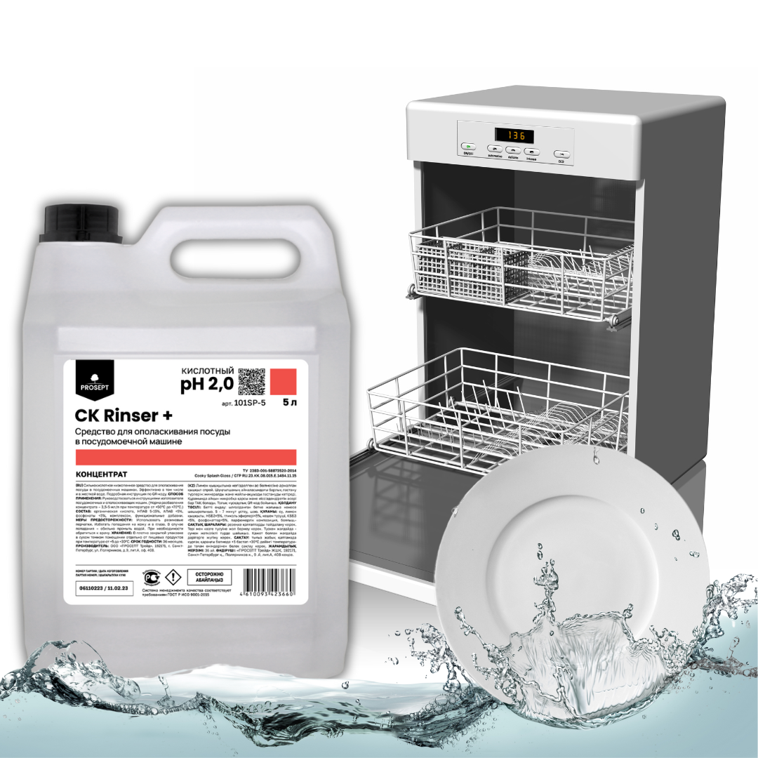 С удовольствием ответим на вопросы об этом продукте. ПРОФЕССИОНАЛЬНЫЙ ОПОЛАСКИВАТЕЛЬ КОНЦЕНТРАТ ПОСУДОМОЕЧНЫХ МАШИН CK RINSER+ CK Rinser + КОНЦЕНТРАТ Средство для ополаскивания посуды в посудомоечной еще→машине Характеристики: сильнокислотное низкопенное средство для ополаскивания посуды в посудомоечных машинах. Хорошо растворяется в воде. Обладает хорошими смачивающими свойствами.