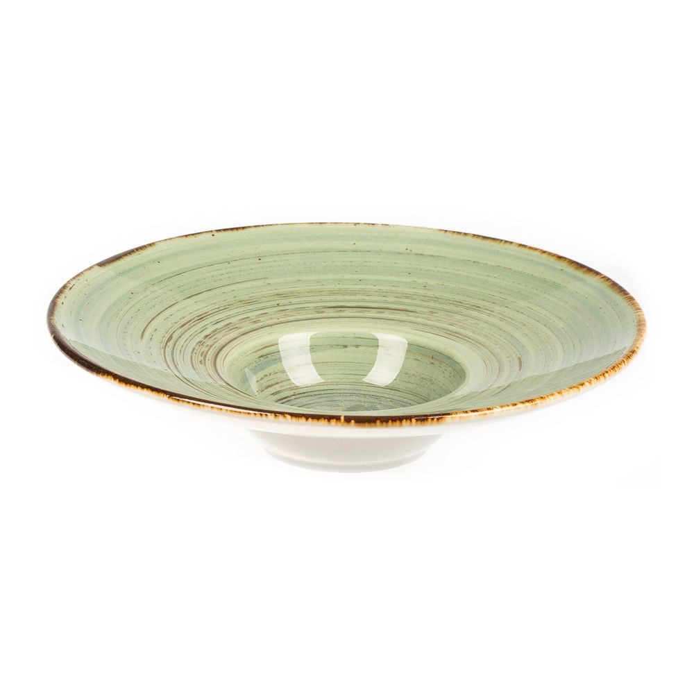 Профессиональная фарфоровая тарелка бренда "P.L. Proff Cuisine" из коллекции Fusion Blue Lake — это сочетание природной эстетики и высокой прочности. Модель выполнена в глубоком зеленом оттенке с ун еще→икальным градиентом, характерным для серии Fusion, что делает каждую подачу авторской и запоминающейся. Форма тарелки с широкими полями идеально подходит для эффектной подачи пасты, ризотто, густых супов (крем-супов), а также объемных салатов и изысканных десертов.