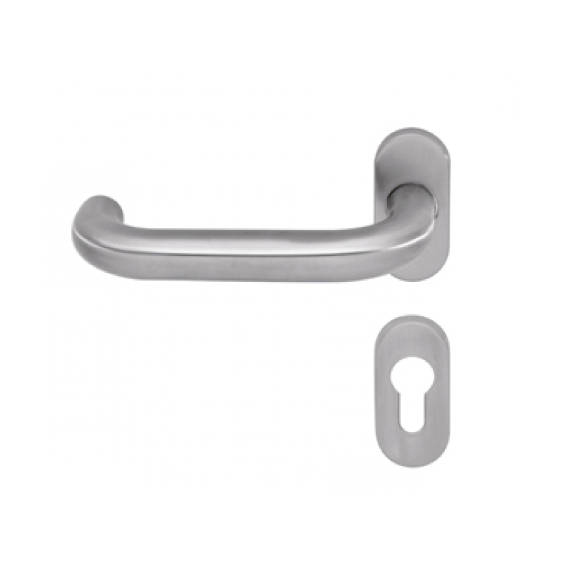 Назначение изделия Нажимные ручки dormakaba серии PURE на овальной розетке рекомендуются к установке на профильные двери, применяемые в обустройстве бизнес-центров, складских помещений и торгово-развл еще→екательных комплексов. Сертифицированы по европейскому стандарту EN 1634-1. Категория использования ручек по европейскому стандарту EN 1906 - 3 класс (200 000 тыс. циклов), коррозионная стойкость – 4 класс. Ручки PURE изготовлены из нержавеющей стали 304 марки, - прочного, устойчивого к механическим повреждениям материала, отличающегося повышенной коррозионной стойкостью и обладающего высоким запасом прочности при низких и высоких температурных режимах.