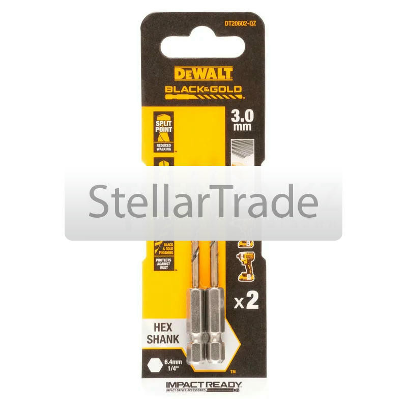 Сверло по металлу DeWALT EXTREME IMPACT Black&Gold 3х72мм 2шт. DT20602-QZ - представляет собой высококачественное инструментальное сверло, разработанное для работы с металлическими материалами. Его ув еще→еличенная длина позволяет сверлить отверстия с высокой точностью и эффективностью без использования покрытия. Преимущества: Для использования в обработке легированных и нелегированных