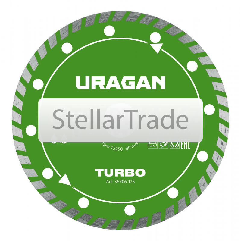 Технические характеристики: Применение: для сухой резки гранита, кирпича, бетона, строительного камня, тротуарной плитки и других твердых материалов, Свойства: имеют косую на еще→сечку по боковым сторонам обода, за счет чего увеличивается механическая прочность, а также повышается уровень отвода тепла при работе. Обеспечивают ровный, аккуратный и быстрый рез бетонных