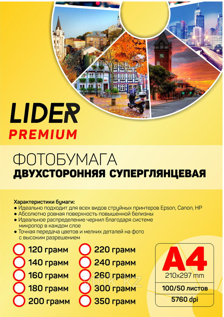 Данная фотобумага, идеально совместима с принтерами HP, Epson, Canon. Глянцевая фотобумага, двухсторонняя, премиум класса. Назначение: универсальная бумага для печати фотографий, буклетов, флаеров или еще→других рекламных материалов. Назначение: струйный принтер. Плотность, г/м2 180гр. Формат: A4, 210*297мм. Фасовка: 50 листов.
