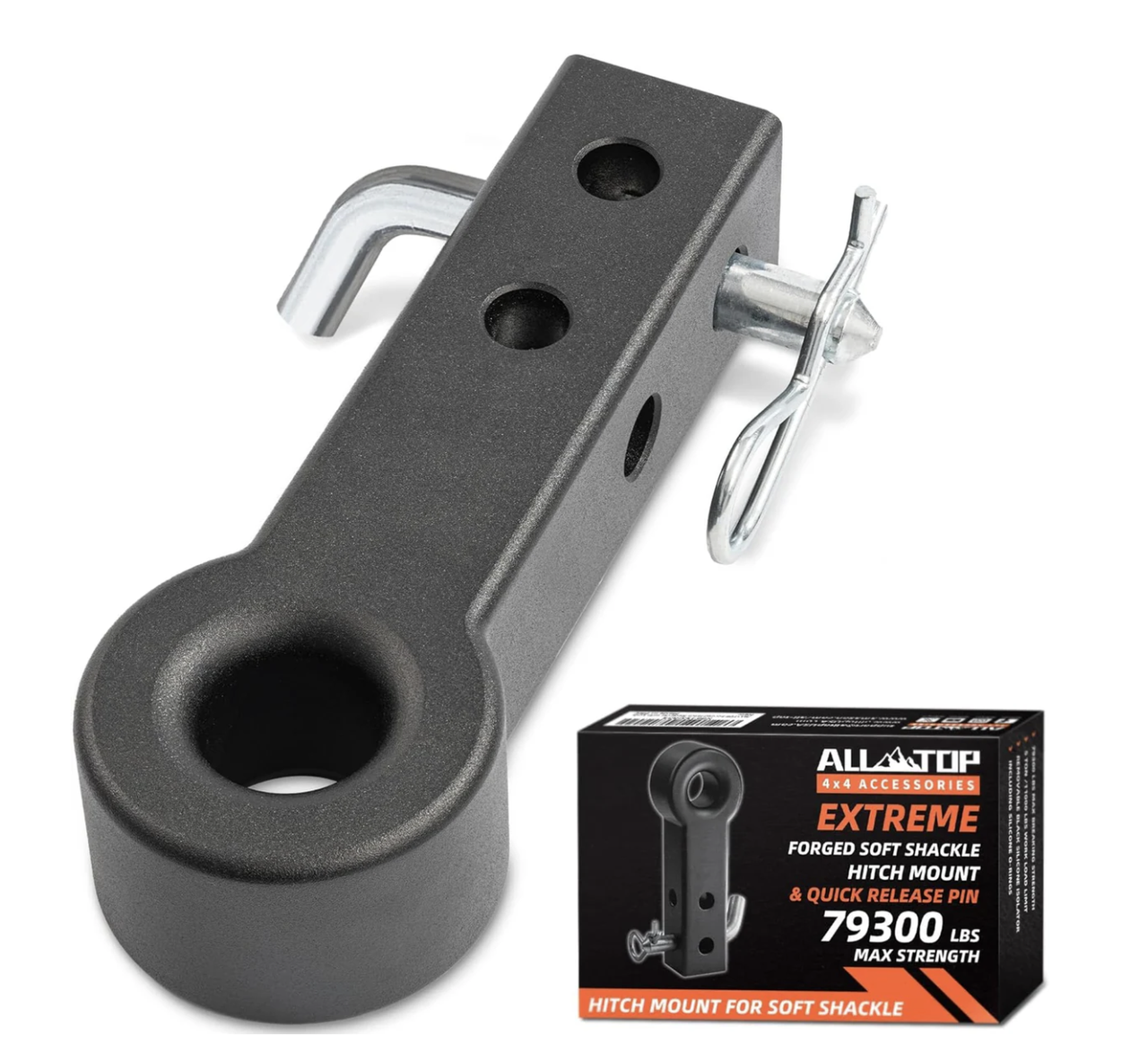 Переходник ALLTOP для мягких шаклов Переходник ALLTOP Extreme Series превращает приёмник фаркопа 2″ в надёжную точку эвакуации. Разработан специально для работы с крупными мягкими шаклами: увеличенное еще→отверстие диаметром 34 мм с закруглёнными краями предотвращает повреждение троса при нагрузке. Двойное отверстие под палец обеспечивает лучший угол выхода, а цельная конструкция исключает