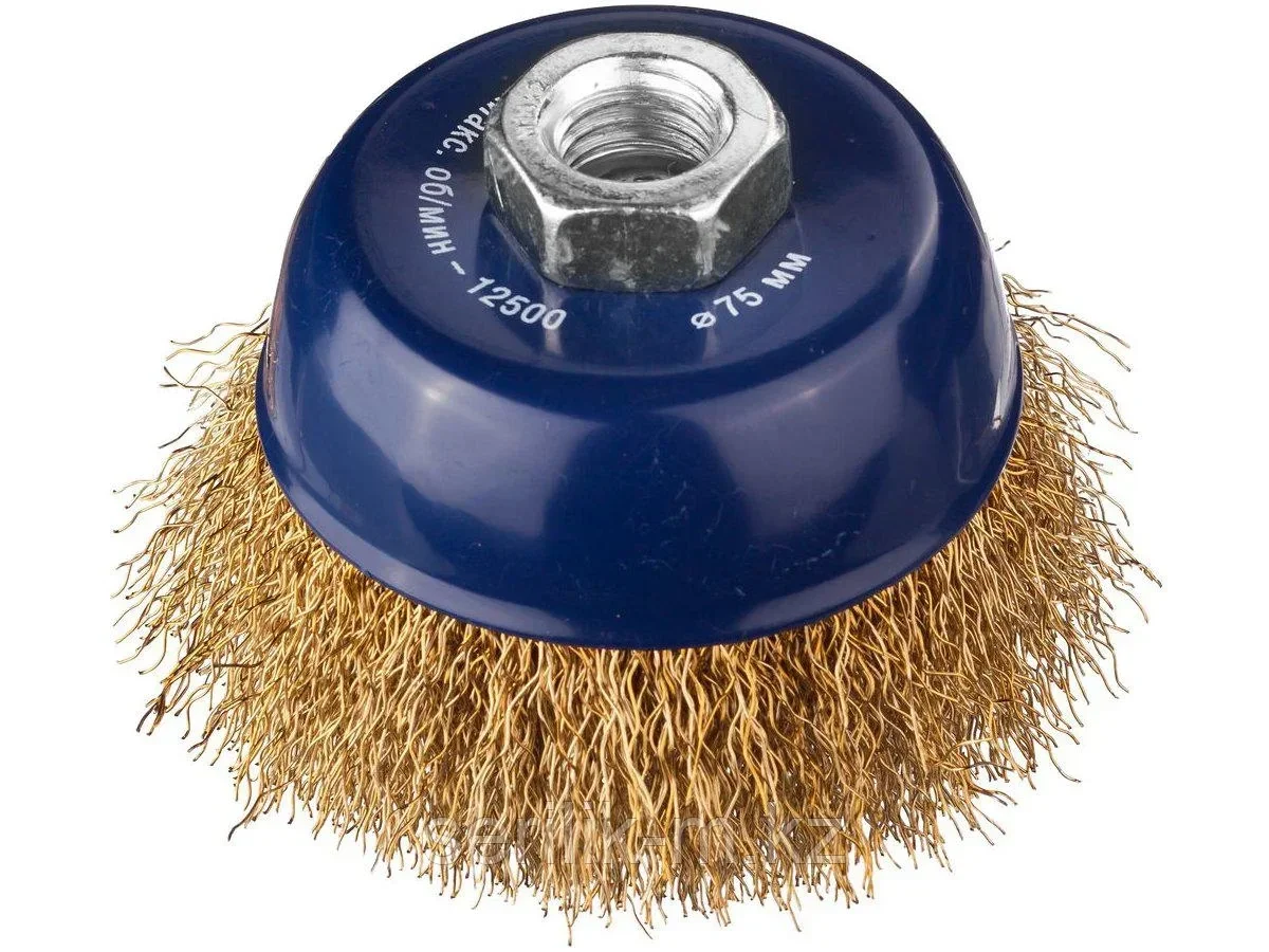 Щетка крацовка чашечная для УШМ DEXX 35103-075, с посадочным М14, витая стальная латунированная проволока 0,3 мм, d=75 мм Щетка крацовка чашечная для УШМ DEXX 35103-075, применяется для удаления заста еще→релых лакокрасочных покрытий, въевшейся грязи, ржавчины, окалины с поверхностей стальных изделий, а также для зачистки сварных швов. Характеристики: Бренд - DEXX. Артикул - 35103-075. Тип - Чашечная крацовка для УШМ. Посадочный диаметр - М14 мм. Вид проволоки - Витая. Материал - Латунированная сталь. Внешний диаметр - 75 мм. Количество рядов проволоки - 1 шт.