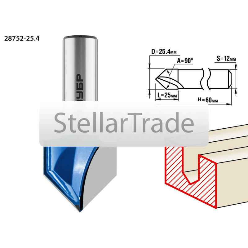 Фреза отлично подходит для профилирования кромок, изготовления декоративных V-образных пазов и рисунков, фрезерования канавок при работе с различными видами древесины. Преимущества ЗУБР 2 еще→8752-25.4: Заточка производится только на самых современных станках с ЧПУ. Использование ЗУБР 28752-25.4: Используется на фрезерных станках и ручных фрезерах при обработке