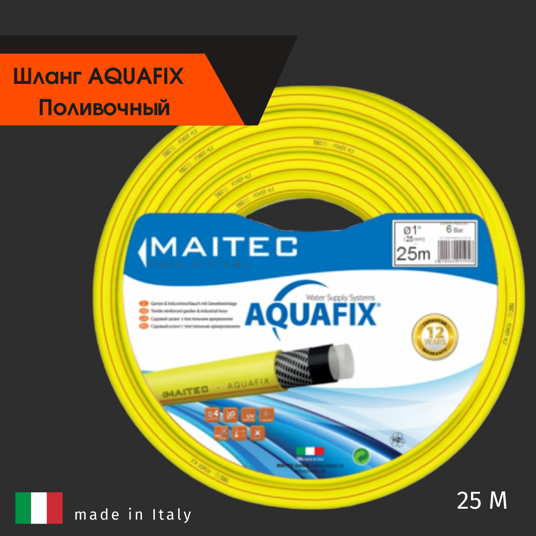 3-слойный ПВХ шланг для садоводства и орошения. Имеет защиту от ультрафиолетовых лучей и возникновения плесени внутри шланга. MAITEC AQUAFIX с гладким профилем для соединения с коннекторами базовой си еще→стемы полива. Благодаря этому эксплуатация шланга становится гораздо проще. Спиралевидное текстильное армирование, усиленное углеродом, помогает шлангу не перегибаться и не