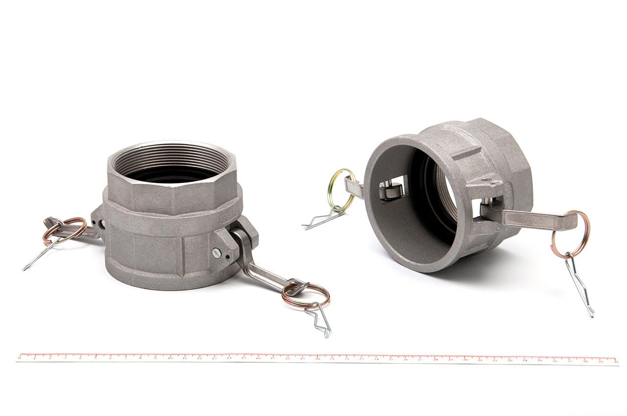 Внутренняя резьба - 4" (100мм) Камлок (Camlock) – это система универсальных самоблокирующихся быстроразъёмных соединений кулачкового типа, которая позволяет мгновенно соединить несколько шлангов (рука еще→вов) между собой, присоединить шланг к различным устройствам и резервуарам, заглушить концы шлангов и адаптеров специальными грязепылезащитными колпаками и т.д. Устройство кулачков