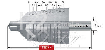 Износостойкое покрытие TiN-GoldБез покрытияИзготовлено из быстрорежущей высококачественной стали HSS-XE для значительно большего срока службы по сравнению со сталями HSS.Технические характеристикиДиам еще→етры ступеней40, 41, 42, 43, 44, 45, 46, 47, 48, 49 и 50 ммШаг ступени4 ммОбщая длина112 ммДиаметр хвостовика13 ммКоличество режущих кромок2КанавкаПрямаяОтлично подходит для сверленияСтали.Чугуна.Цветных металлов.Пластика.