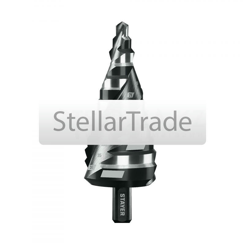Инструмент STAYER это надежность и качество, проверенные временем! Сверление ровных отверстий различного диаметра одним сверлом. Преимущества STAYER 29661-6-38-12: Высококаче еще→ственная быстрорежущая сталь повышает срок службы сверла. Подточка позволяет начать сверление без подготовительных работ. Трехопорный хвостовик для предотвращения проскальзывания в
