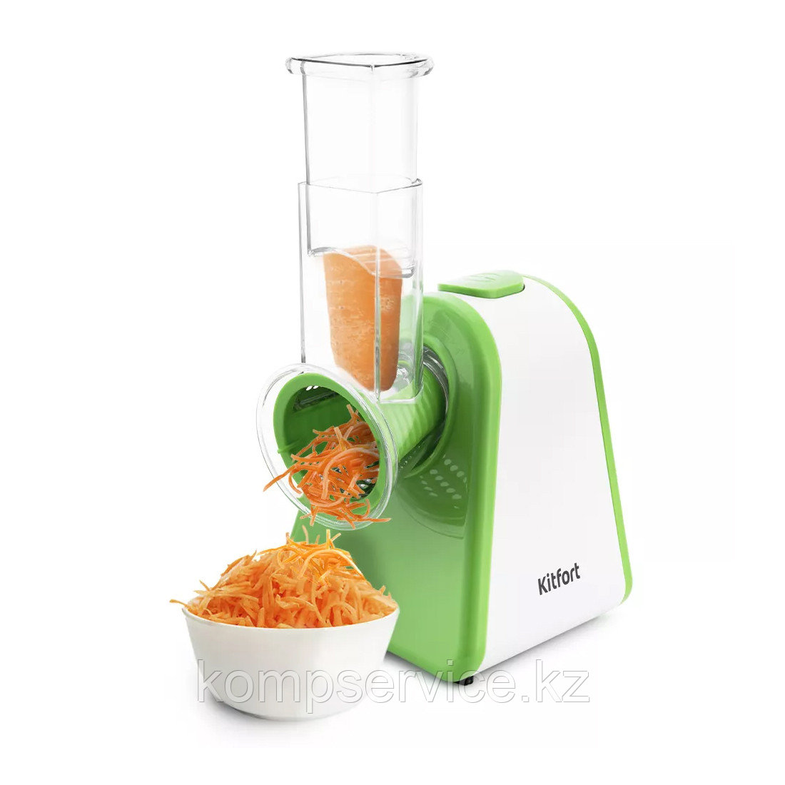 Тёрка электрическая Kitfort КТ-1385 Электротерка Kitfort КТ-1385 с интересной бело-зеленой расцветкой корпуса - это надежный кухонный помощник, который с удовольствием возьмет на себя работу, связанну еще→ю с теркой и шинковкой различных продуктов. При использовании этого устройства все ингредиенты для блюда будут измельчаться автоматически, вам не нужно будет прикладывать никаких усилий.