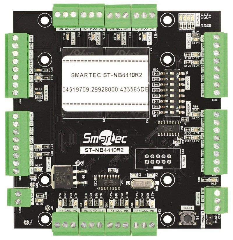 Назначение изделия Модуль ST-NB441DR2 предназначен для увеличения емкости контроллера ST-NC441R2 на 4 двери. Особенности ● Поддержка до 4 дверей или 2 турникетов ● Поддержка считывателей с Wiegand 26, еще→Wiegand 34 или пользовательским Wiegand 26−64 ● Виды идентификации: карта, код, карта и код, карта или код ● Порт RS485 ● Свободно программируемые входы/выходы ● 8 контролируемых входов ● 4 релейных выхода Дополнительное оборудование (272831) ST-AC001BX – металлический монтажный бокс (294402) ST-AC002BX – металлический монтажный бокс