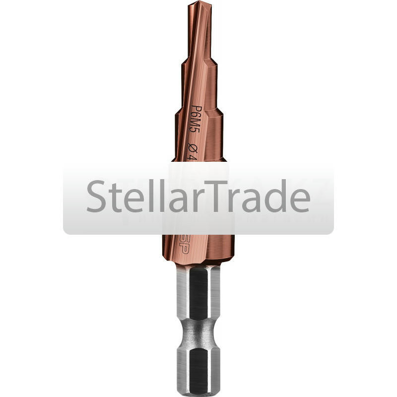 Сверло ступенчатое по металлу 4-6-8-10-12-14-16-18-20мм, P6M5, шестигранный хвостовик - предназначено для сверления отверстий разных диаметров в материалах из стали, цветных металлов, листовой стали, еще→нержавейки и пластика. Основным преимуществом ступенчатого сверла является сверление без предварительной подготовки заготовки (накернивания, засверловки), а также отсутствием заусенцев на