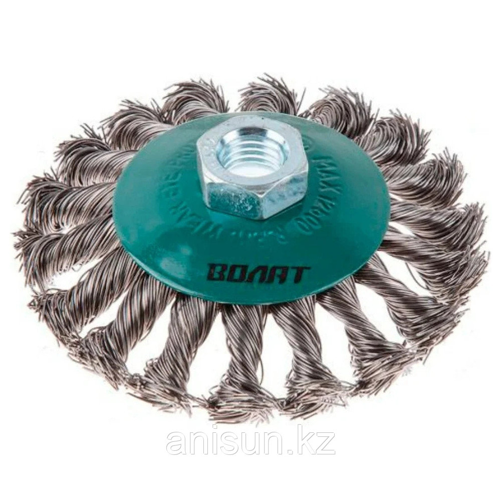 Щетка дисковая 100мм ВОЛАТ 81060-100 - применяется для грубой очистки металлических поверхностей от ржавчины, грязи, удаления лакокрасочных покрытий и зачистки сварных швов.
