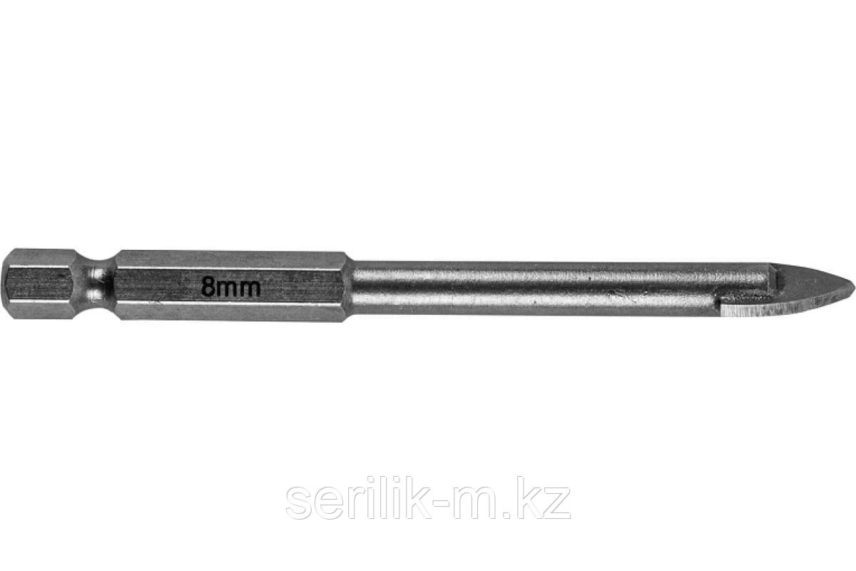 Сверло 10*85мм, 6-гранный хвостовик рассчитано на сверление керамической плитки, стекла, мрамора и фарфора. Подходит для интенсивного использования. В процессе работы рекомендуется применять водяное о еще→хлаждение для увеличения ресурса сверла. Твердосплавная режущая пластина изготовлена из износостойкого сплава ВК6. Точное сверление и легкое засверливание обеспечивает специальный профиль режущей пластины. Сверло имеет 6-гранный хвостовик с прорезью, который не прокручивается в патроне, а установка сверла в быстрозажимной патрон занимает всего несколько секунд.