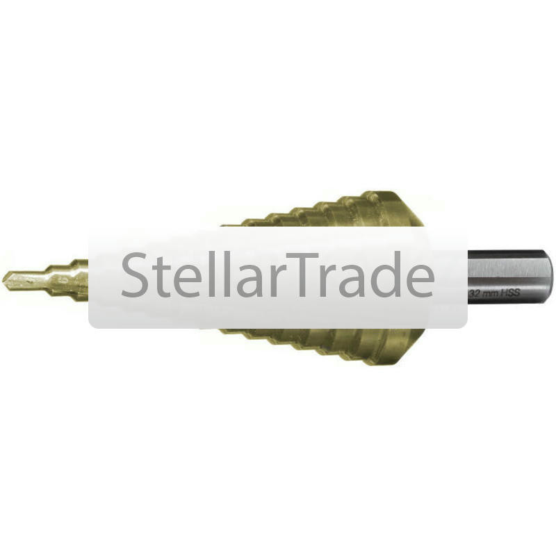 Ступенчатое сверло предназначено для создания отверстий диаметром от 4 до 32 мм в тонколистовом металле, цветных металлах, стали и пластике. Изготовлено из высококачественной быстрорежущей стали (HSS) еще→с титановым покрытием (TiN), обеспечивающим повышенную износостойкость и длительный срок службы. Сверло имеет 15 ступеней с шагом в 2 мм, позволяя точно выбирать необходимый