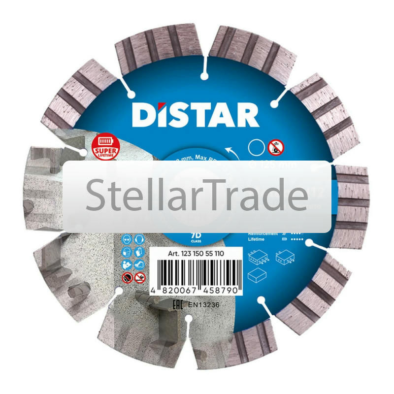 DiStar H12 1A1RSS-W METEOR (12315055110) Описание: Алмазный диск DiStar H12 1A1RSS-W METEOR с турбо усиленным сегментом предназначен для резки монолитного, гидротехнического еще→и армированного бетона. Часто используется для штробления поверхности под укладку проводки на глубину до 3,5 см. Отличается высокой скоростью реза и максимальной долговечностью при работе на бетоне марки М400.
