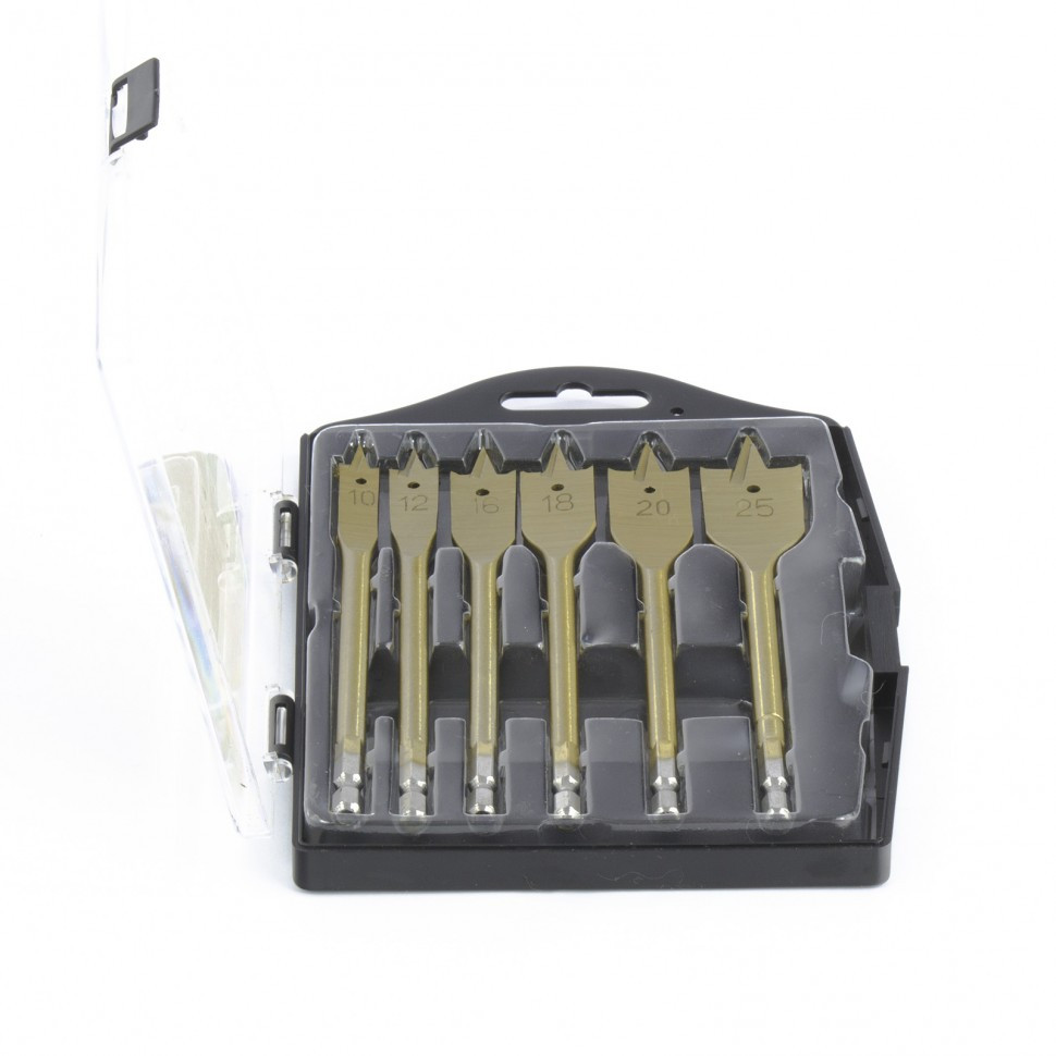 Предназначены для сверления отверстий в древесине. Перовые сверла изготовлены из углеродистой стали.Твердость режущих кромок 42–50 HRC.Хвостовики имеют шестигранную форму, что предотвращает поворот св еще→ерла.Особенности набора:Наличие подрезных кромок, которые позволяют получать отверстия с улучшенным качеством поверхности. Сверла имеют нитрид титановое покрытие, что повышает износостойкость и долговечность инструмента.Удобный пластиковый кейс для хранения. Комплектация: перовые сверла 6 шт: 10-12-16-18-20-25 мм.Пластиковый кейс.