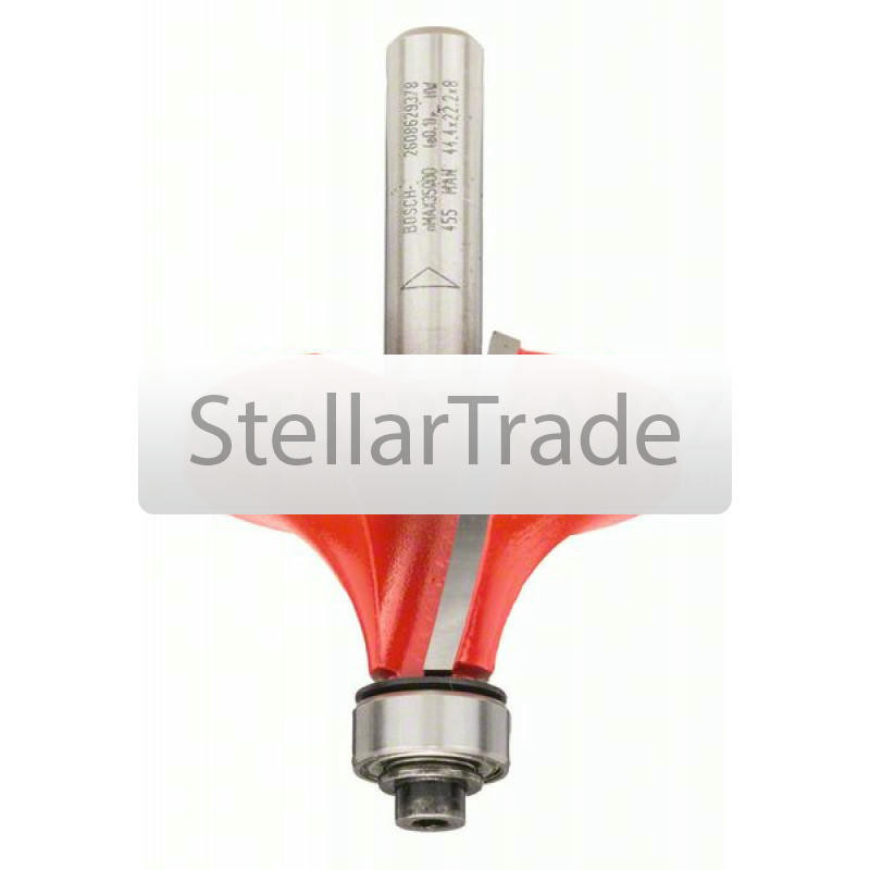 Карнизная фреза Bosch 8 mm, D 44,4 mm, R1 15,9 mm, L 22,2 mm, G 64 mm Для скругления кромок без прижогов Шарикоподшипник для простого ведения прямо на заготовке без шаблона еще→Установленный под углом сегмент гарантирует исключительно чистую поверхность благодаря непрерывной обработке При замене шарикоподшипника одну и ту же фрезу можно использовать для различных профилей