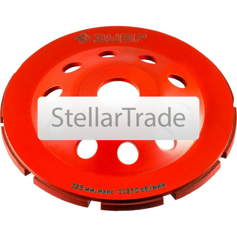 Основным рабочим элементом алмазных шлифовальных чашек является синтетический алмаз повышенной твердости. Корпуса алмазных чашек изготовлены из высокопрочной стали. Каждое изделие проходит строгий кон еще→троль качества, особое внимание уделяется сбалансированности, т.к. инструмент работает на больших оборотах. Преимущества ЗУБР 33377-125: Высота алмазных сегментов 5