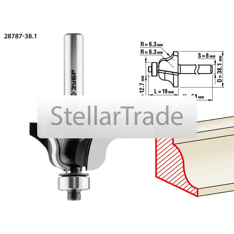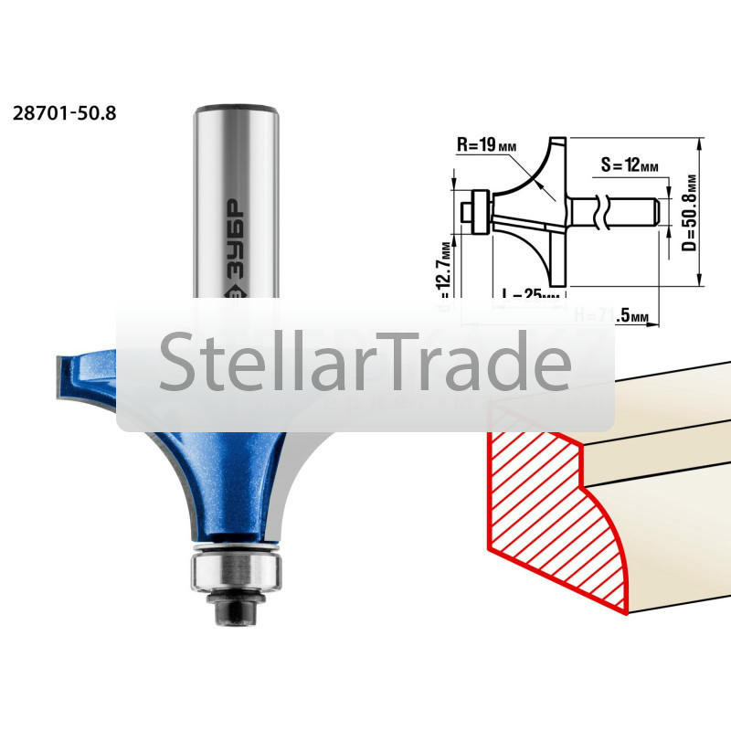 Фреза отлично подходит для скругления кромок при обработке столешниц, полок, шкафов и прочих работ с разнообразными видами древесины. Преимущества ЗУБР 28701-50.8: Заточка пр еще→оизводится только на самых современных станках с ЧПУ. Упорный подшипник позволяет обрабатывать криволинейные кромки без дополнительных приспособлений. Использование ЗУБР 28701-50.8: