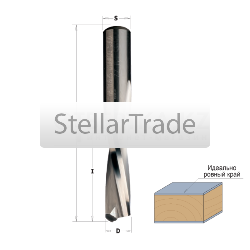 Фреза из твёрдого сплава спиральная нижний рез. Монолитные твёрдосплавные HWM фрезы со спиральными режущими кромками СМТ (Италия).Технические особенности: - Твердый сплав пре еще→миального качества HWM; - 2 спиральные режущие грани Z2; - Идеальный верхний край обработанной заготовки; - Выброс стружки вниз.Применение: для пазования, копирования, раскроя и