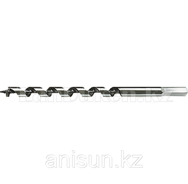 Изготовлено из углеродистой стали с твердостью режущей части 40 HRС. Сверло имеет центрирующее остриё со спиральной нарезкой, уменьшающей осевую нагрузку, и острую подрезную кромку, которая позволяет еще→с высокой точностью просверлить отверстие с гладкими поверхностями, предотвращая смещение сверла и исключая необходимость в предварительном засверливании. Шестигранный хвостовик обеспечивает надежное удержание сверла в патроне.