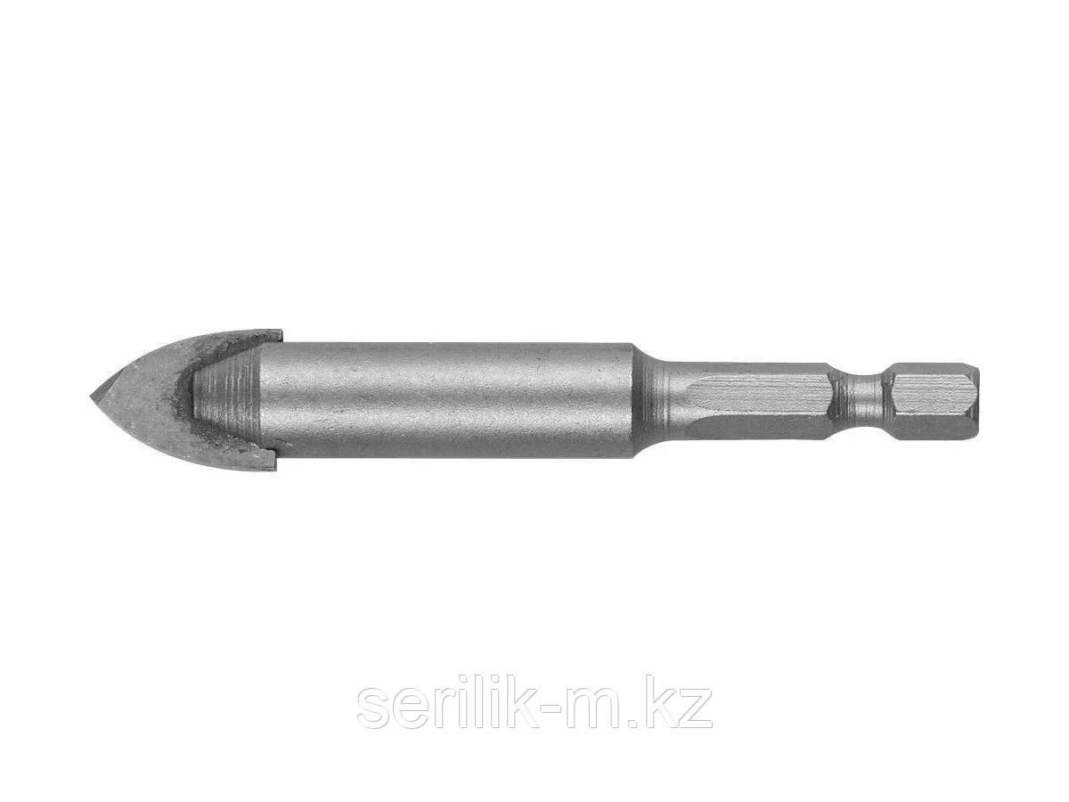 Сверло по кафелю и стеклу 12 мм ЗУБР 29840-12, МАСТЕР, с двумя режущими лезвиями Сверло по кафелю и стеклу 12 мм ЗУБР 29840-12, предназначено для сверления отверстий в стекле, керамической и кафельной еще→плитке. Наконечник сверла из твердого сплава BK6. Специальная заточка режущих кромок улучшает прохождение материала. Шестигранный хвостовик для предотвращения проворачивания в сверлильном патроне. Специальная проточка хвостовика 1/4" для использования быстросъемных адаптеров. Характеристики: Бренд - Зубр. Артикул - 29840-12. Хвостовик - Шестигранный с проточкой хвостовика 1/4". Диаметр - 12 мм. Длина сверла - 95 мм. Тип - Сверло по кафелю и стеклу. Количество режущих кромок - 2.