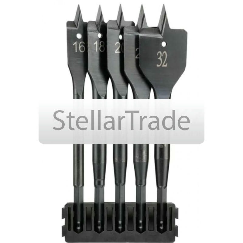 Набор перьевых сверл по дереву DeWALT 16-32мм в кейсе 5шт. DT70834 - используется для быстрого сверления древесины, электриками и сантехниками для прокладки проводов и отверстий для прохода труб, стро еще→ителями террас для отверстий для прохода болтов. Идеально подходит для дверных замков, долбежных, электромонтажных и сантехнических работ. Подходит для натуральной твердой и мягкой