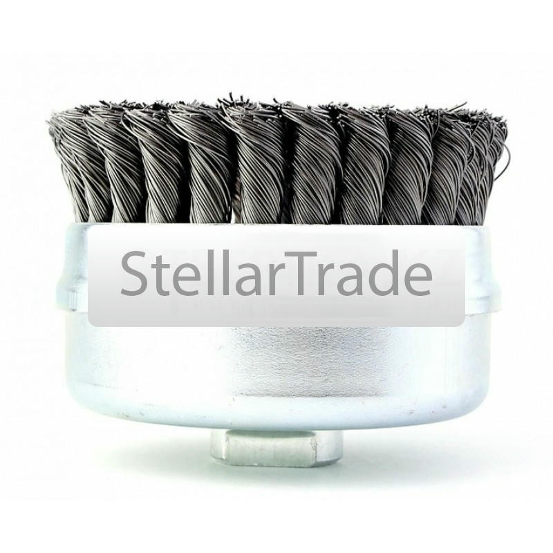 Щетка чашечная жгутовая 6608608154 Osborn 100 мм с посадкой М14 на УШМ (болгарка) для тяжелых зачистных работ по изделиям из черной стали, выполняют агрессивную и эффективную зачистку благодаря витой еще→скрученной в жесткие жгуты стальной проволоки. Предназначена в основном для обработки сварных изделий с большими плоскими поверхностями, снятие старой краски, окалины, ржавчины и