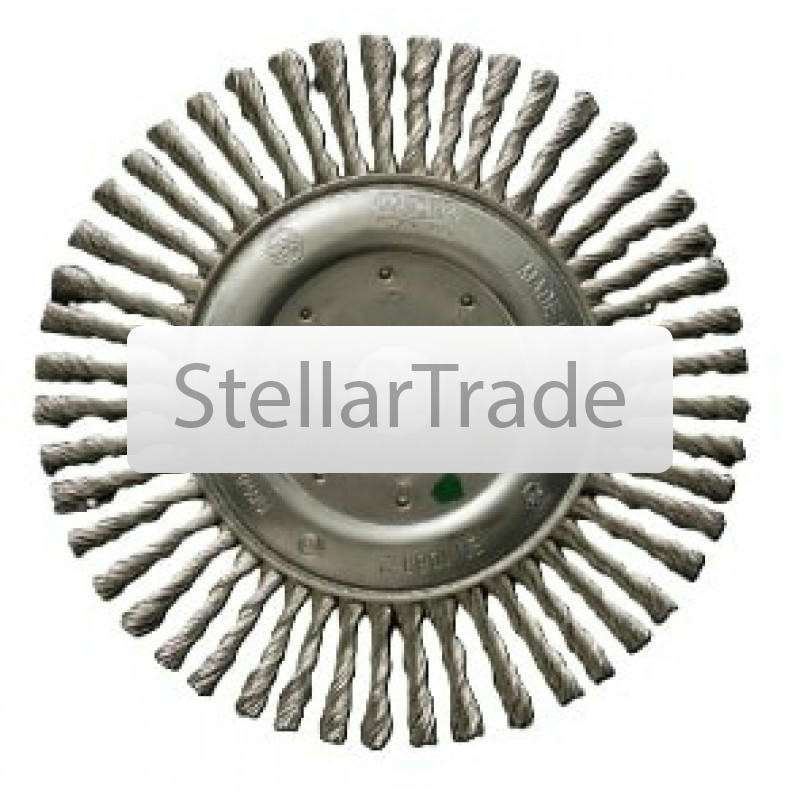 Щётка дисковая D 178 x 6 x 22,2 mm. Жгутовая стальная проволока. Щетки дисковые жгутовые на УШМ (болгарка) для тяжелых зачистных работ по изделиям из черной стали, выполняют агрессивную и еще→эффективную зачистку благодаря витой скрученной в толстые жесткие жгуты стальной проволоки. Корщетки предназначены в основном для обработки прямых лицевых сварных швов, снятие окалины,