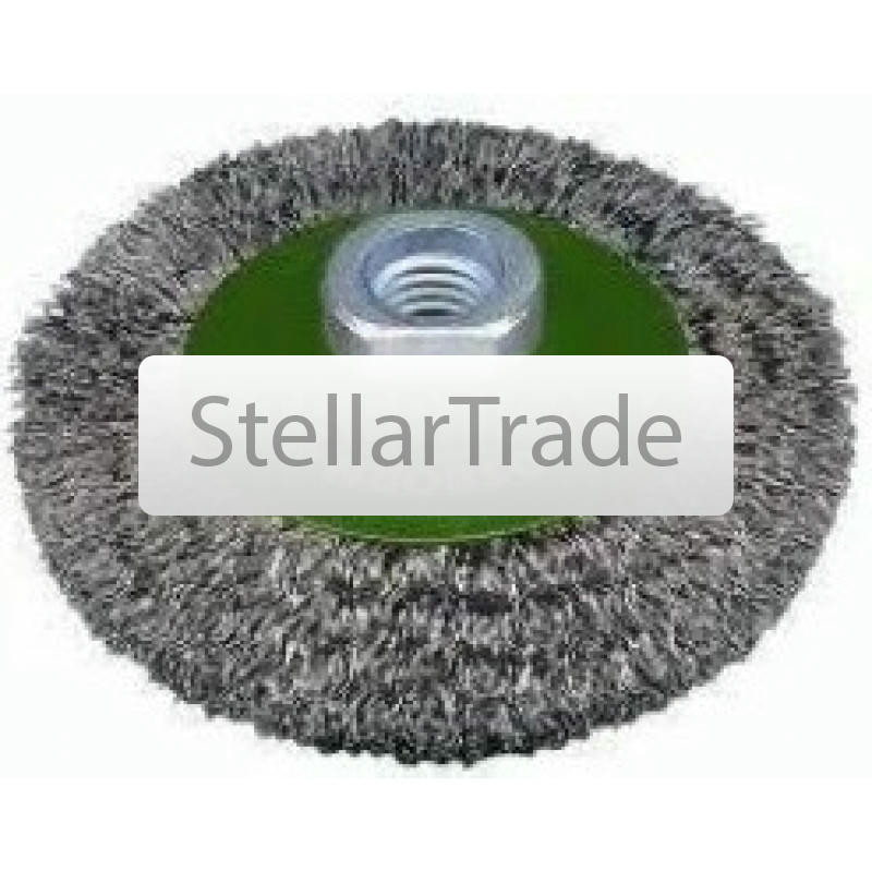 Щетка для УШМ «Чашка» Denzel 746043 с гайкой М14, диаметром 75 мм, с щетиной из витой нержавеющей проволоки диаметром 0,3 мм, позволяет быстро и аккуратно очистить металлическую, деревянную или пласти еще→ковую поверхность от незначительных загрязнений и ржавчины, а также удалить остатки лакокрасочных материалов, сделать поверхность шероховатой или матовой. Насадка предназначена для очистки