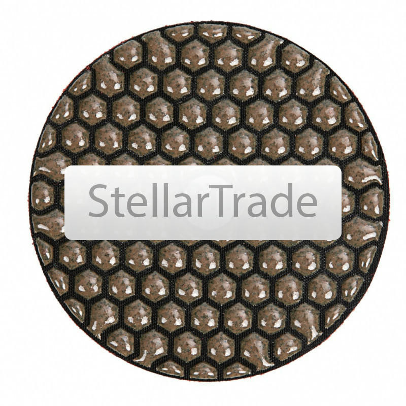 Алмазный гибкий шлифовальный круг Matrix 73500 диаметром 100 мм, с зернистостью P 50, 5 шт. в упаковке, предназначен для сухого шлифования преимущественно цветных и черных поверхностей из гранита, мра еще→мора, природного и искусственного камня, керамогранита. Абразив с зернистостью P 50 снимает большой слой материала и используется для черновой шлифовки. Гибкость круга упрощает обработку
