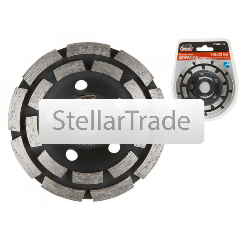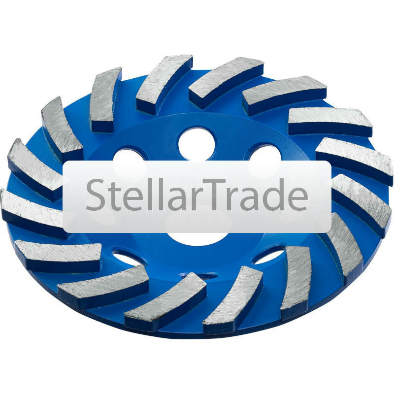 Технические характеристики: Применение: для интенсивной грубой зачистки выпуклых и неровных участков, снятия толстых слоев бетона, удаления швов и наплывов бетонных, гранитных, мраморных, еще→кирпичных, каменных и других особо твердых поверхностей. Изделие является сменной составной частью углошлифовальных или мозаично-шлифовальных машин, имеющих посадку 22,2 миллиметра.