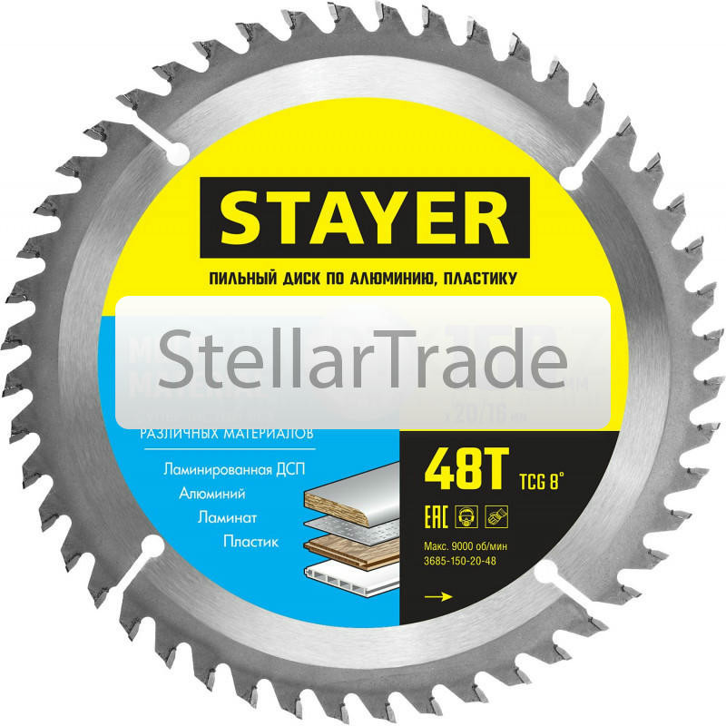Универсальный пильный диск для резов множества материалов. Отлично подходит для пропилов Алюминия, пластика, ДСП, МДФ и ламинированных древесных материалов. Преимущества STAYER 3685-150-2 еще→0-48: Прецизионная автоматическая четырехсторонняя заточка зубьев повышает точность реза Специальные компенсационные прорези снижают внутреннее напряжение, возникающее при